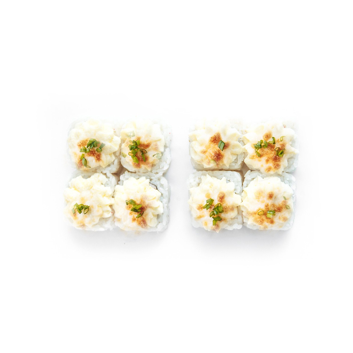 Нори, рис, креветки, соус лава, соус спайси, авокадо, снежный краб, масаго, кунжут, лук зеленый. (6 шт.)
